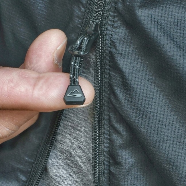 特徴的なアシンメトリーのファスナーは見た目の差別化はもちろん、顎(アゴ)にあたらないよう工夫が施されています。