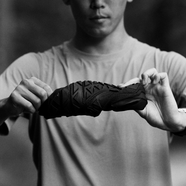 試行錯誤を重ね導き出した設計と素材は、地面からの情報を最大限受けると同時に、負荷の高い衝撃は抑えることで、微細な動きの変化を捉えながら足本来のポテンシャルを損なわせません。