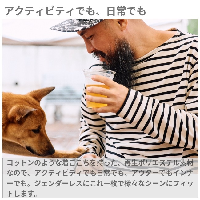 再生ポリエステル素材なので、汗をかいても乾きやすく、高温多湿な日本でも不快感なく着用いただけます。