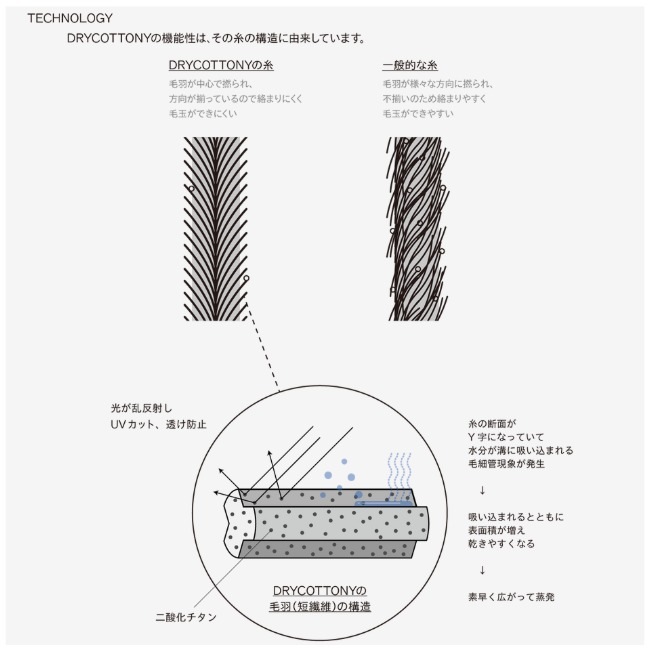 BRING独自素材DRYCOTTONY / ドライコットニーを使用