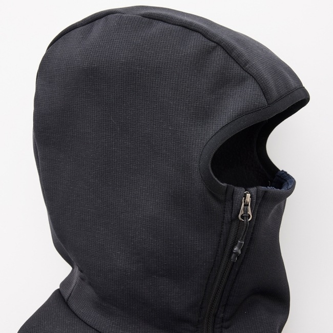 高い密着性のフードはバラクラバとしても使用可能。