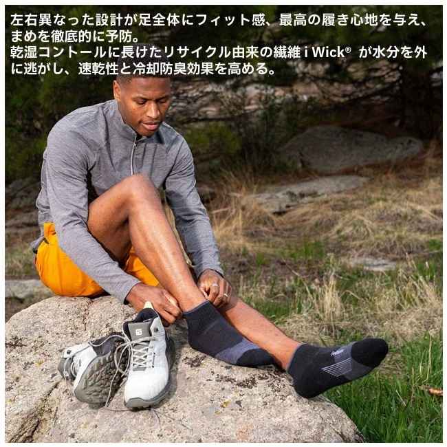 【フィーチャーズ Feetures トレイル マックスクッション クォーター ユニセックス TRAIL MAX CUSHION QUARTER Unisex】 かかととつま先を補強し、耐久性を高めたスポーツソックス 岩や木の根が張り巡らされた険しい山道や、絶えず変化する過酷な環境で、高密度なクッションがあなたの足と足首を守るトレイルコレクション。 【SPEC】 展開サイズ: 【S】21.5cm-23.5cm / 【M】24.0cm-26.0cm / 【L】26.5cm-29.0cm 素材:ポリエステル、ナイロン、ポリウレタン