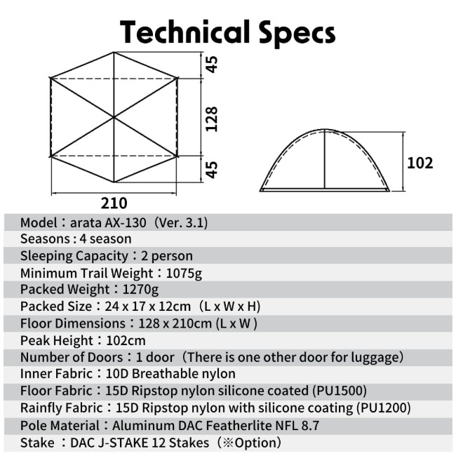 ※1 装備重量は1265g、ただし付属するグラウンドシートの重量(113g)は装備重量に含まれません。