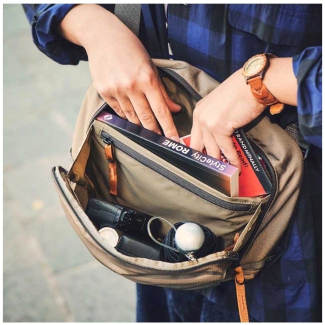 熟考され、同シリーズのショルダーバックより追加されたポケットは、見た目より多くの荷物を持ち運ぶことができます。