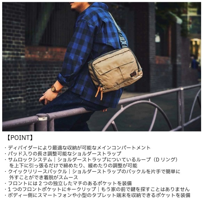 ディストリクトシリーズで最も大きいショルダーバックは、財布、携帯電話、モバイルバッテリー、サングラスなどを収納するための十分な